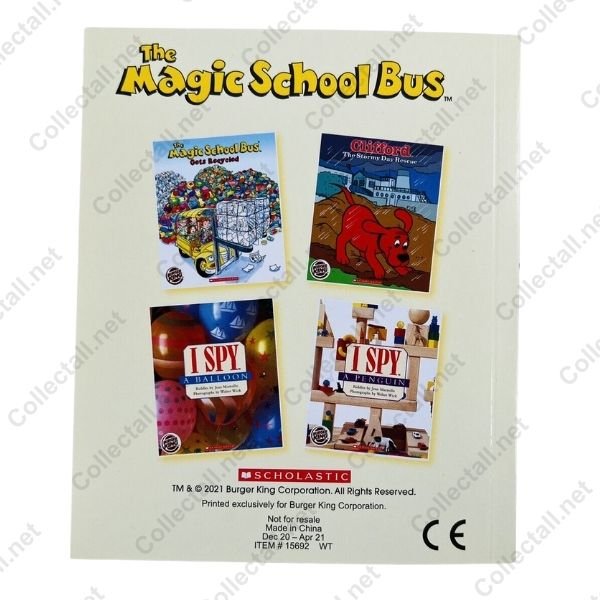 Burger King'in 2021 yılında çıkardığı Kids Menü oyuncak serisinden biri olan Scholastic Books serisine ait The Magic School Bus Gets Recycled kitabı.