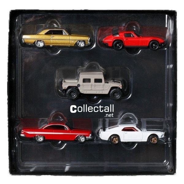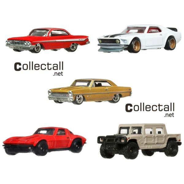 Hot Wheels 2023 yılı Fast & Furious Premium serisine ait 5 farklı modelin yer aldığı Premium Bundle 2. Kutu içerisinde altın rengi ‘66 Chevy Nova, kırmızı renk Custom Corvette Stingray Coupe, ten rengi Hummer H1, kırmızı renk ’61 Impala ve beyaz renk '69 Ford Mustang Boss 302 bulunmakta.
