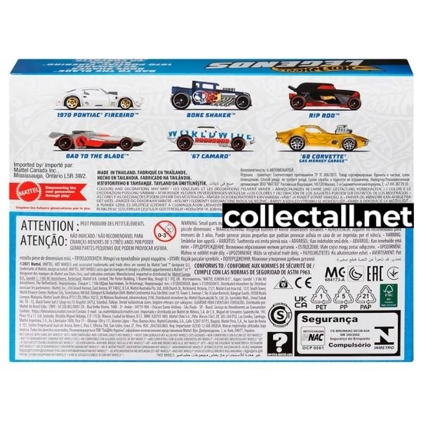 Hot Wheels 2024 yılına ait 6 farklı araçtan oluşan Hot Wheels Legends Tour 6'lı paket. Paket içerisindeki araçlar Bad to the Blade, Bone Shaker, ‘67 Camaro, 1970 Pontiac Firebird, Rip Rod ve ’68 Corvette - Gas Monkey Garage.