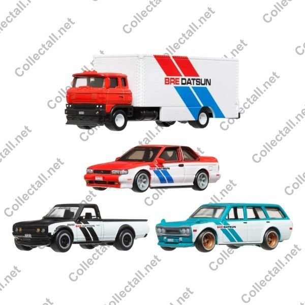 Hot Wheels Premium 2024 yılı BRE Premium Collector Set. Setin içerisinde 4 farklı araç yer almakta. Set içerisindeki araçlar siyah-beyaz renk BRE Datsun 620, turkuaz-beyaz renk BRE Datsun 510 Wagon, kırmızı-beyaz renk 1991 BRE Nissan Sentra SE-R ve kırmızı-beyaz renk BRE Sakure Sprinter.