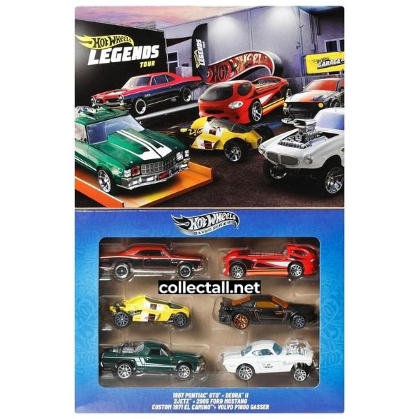 Hot Wheels 2025 yılına ait 6 farklı araçtan oluşan Hot Wheels Legends Tour 6'lı paket. Paket içerisindeki araçlar 1967 Pontiac GTO, Deora II, 2JetZ, 2005 Ford Mustang, Custom 1971 El Camino ve Volvo P1800 Gasser.