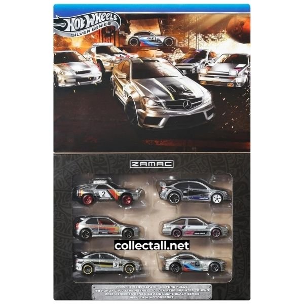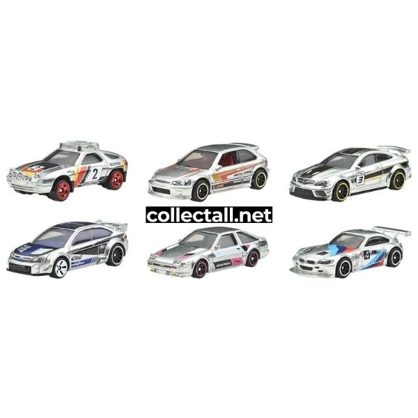 Hot Wheels 2025 yılına ait 6 farklı araçtan oluşan Zamac 6'lı paket. Paket içerisindeki araçlar 2012 Mercedes-Benz C 63 AMG Coupe Black Series, ‘99 Honda Civic Type R (EK9), Porsche 928S Safari, BMW Z4 M Motorsport, ’08 Ford Focus ve Toyota AE86 Sprinter Trueno.