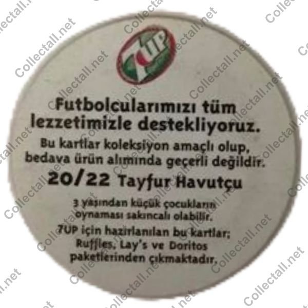 1999 yılı 7up A Milli Futbol Takımı, futbolcu TV tasolarından Tayfur Havutçu. Taso numarası 20.