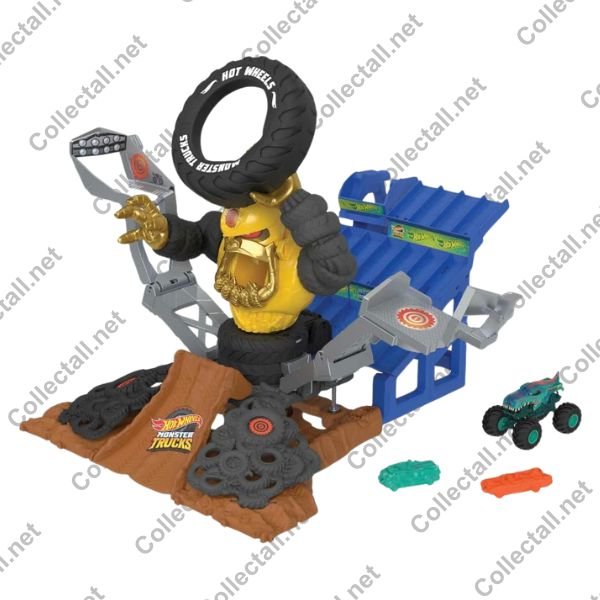 Hot Wheels 2023 Monster Trucks serisine ait Mega-Wrex vs Crushzilla Takedown oyun seti.